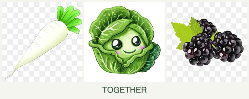 - Improved Growth: Radishes grow quickly and can be harvested before cabbage and blackberries fully mature, reducing competition.