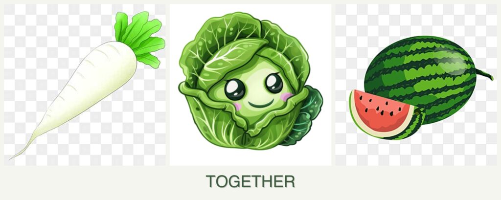 - Growth Requirements: Radishes and cabbage prefer cooler temperatures, while melons need warmth.