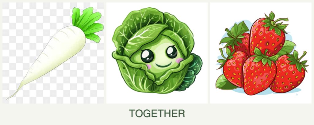 Growth Requirements: Radishes and cabbage are cool-season crops, thriving in similar conditions, while strawberries prefer slightly warmer temperatures. However, they can still be grown together with careful planning.