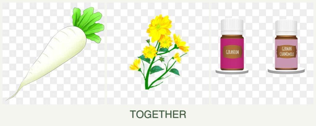 - Growth Requirements: Radishes require full sun and well-drained soil, while calendula and geraniums can tolerate partial shade. This flexibility allows them to thrive together.