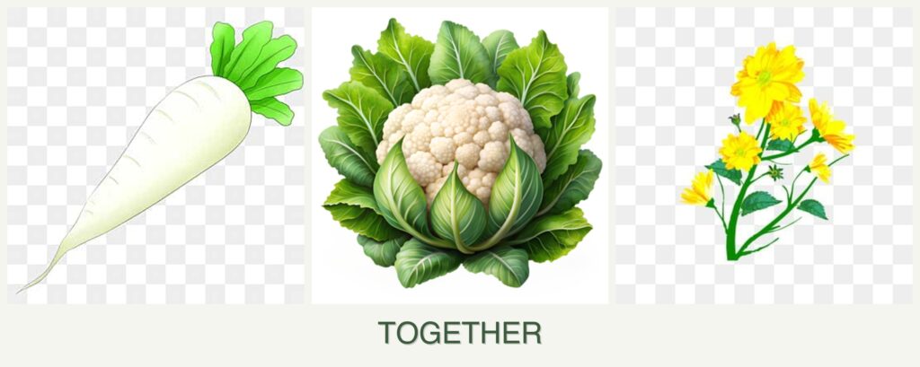 - Nutrient Needs: These plants have different nutrient needs, reducing competition. Radishes require less nitrogen compared to cauliflower, which benefits from a nitrogen-rich environment.