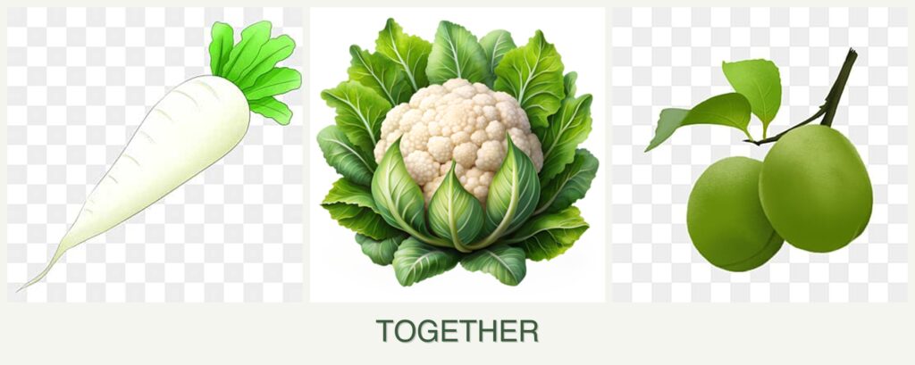- Competition for Resources: Radishes and cauliflower compete for space and nutrients, which can be managed by proper spacing.