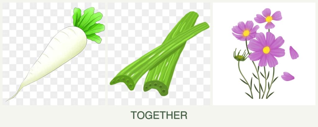 - Space Efficiency: Radishes grow quickly and can be harvested before celery and cosmos reach full maturity, allowing for efficient use of space.
