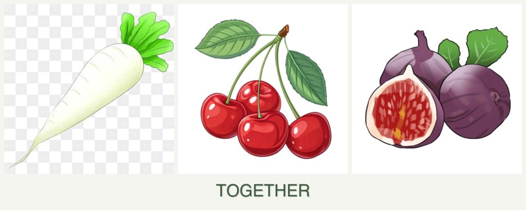 - Pest Control: Radishes can deter some pests, but cherries and figs may attract different ones.