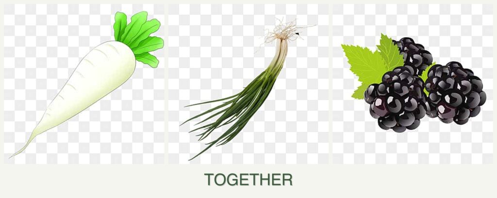 Planting radishes, chives, and blackberries together can offer several advantages: