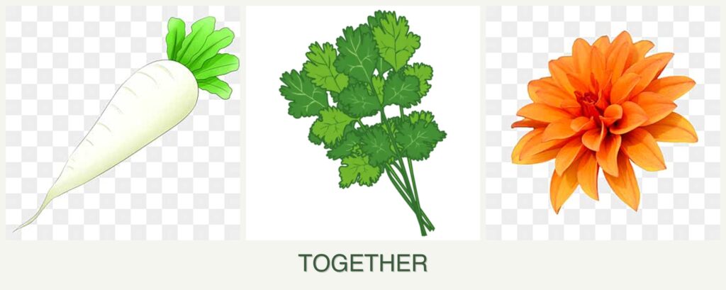 Can you plant radishes, cilantro and dahlias together?