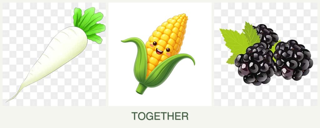 - Pest Control: Radishes can deter some pests, but blackberries and corn are susceptible to different insects and diseases, complicating pest management.