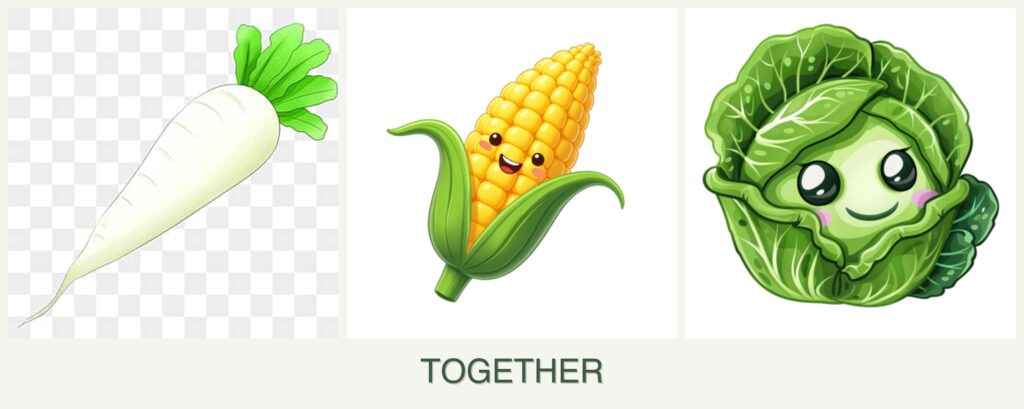 - Resource Competition: Corn’s high nutrient demand can overshadow radishes and cabbage if not managed well.