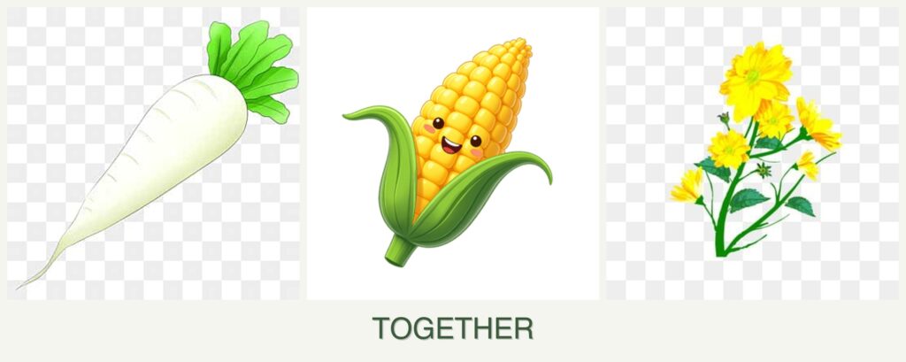 - Resource Competition: Corn’s high nutrient and water demands can overshadow radishes and calendula if not managed properly.
