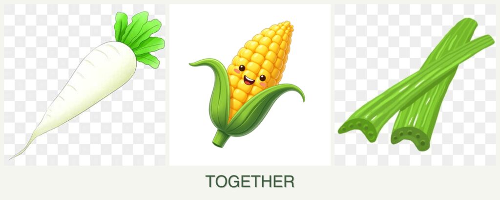 - Competition for Resources: Corn’s high nutrient demand may require careful fertilization to ensure celery and radishes receive adequate nutrients.