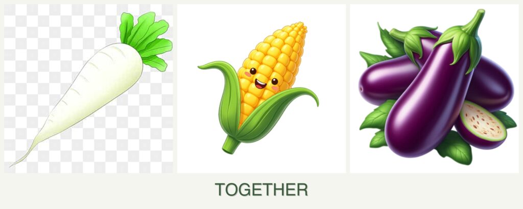 - Nutrient Needs: Corn is a heavy feeder, while radishes and eggplants have moderate nutrient requirements.