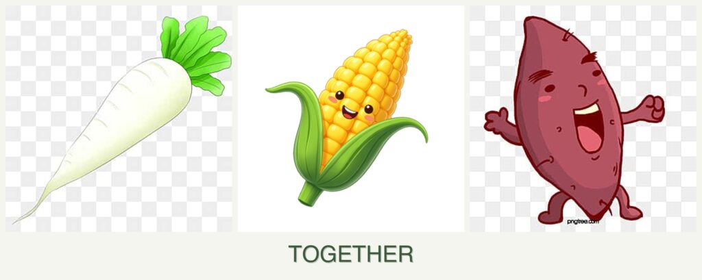 - Competition for Resources: Corn’s high nutrient demand can overshadow radishes and sweet potatoes if not managed properly.