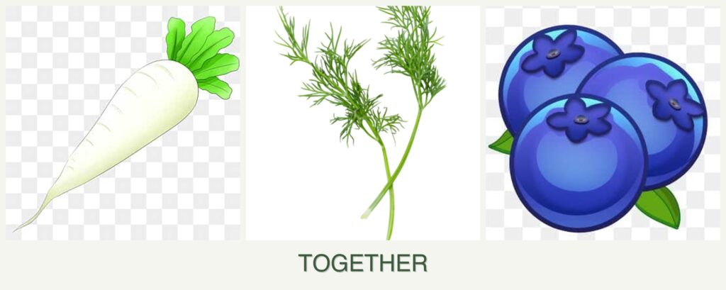 Can you plant radishes, dill, and blueberries together? The short answer is no. While radishes and dill can be good companions, blueberries have vastly different requirements that make them unsuitable to grow alongside radishes and dill.