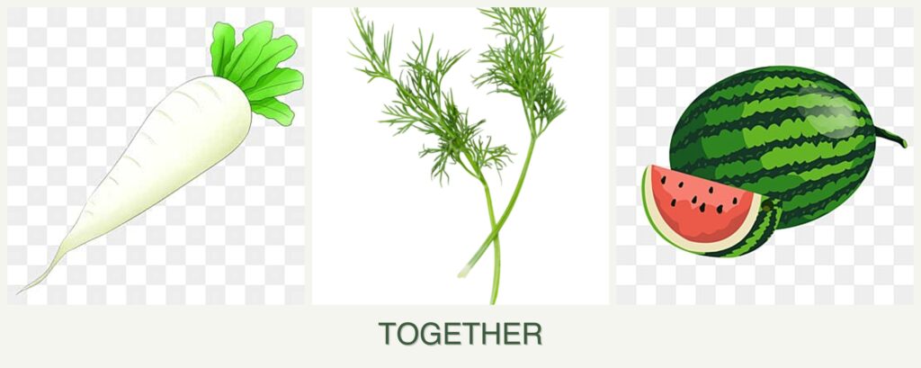 Can you plant radishes, dill and melons together?