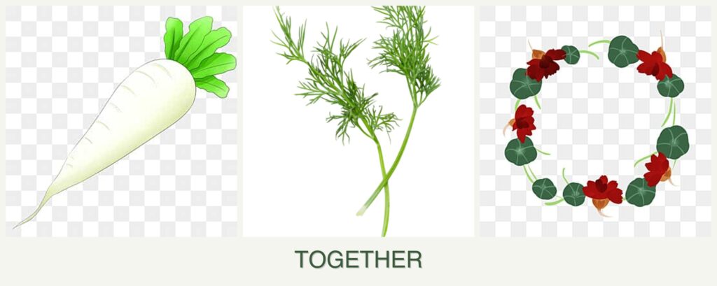 Planting radishes, dill, and nasturtiums together offers several benefits: