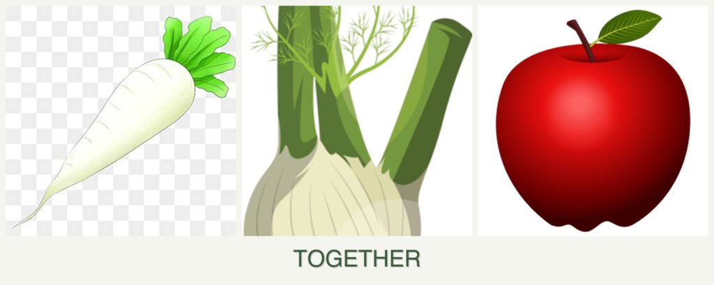 - Growth Requirements: Radishes and apples can share some growing conditions, but fennel’s vigorous growth can overshadow and compete with others for nutrients and space.