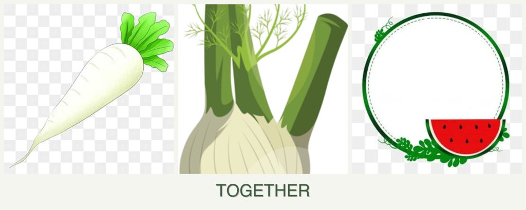 Growth Requirements: Radishes and watermelons thrive in similar conditions, preferring full sun and well-drained soil. Fennel, however, can disrupt the growth of these plants due to its allelopathic nature.