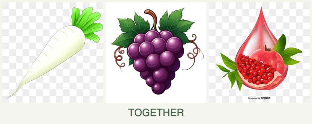 Competition for Resources: Grapes and pomegranates require significant nutrients and space, which can overshadow radishes.