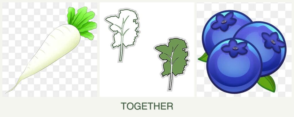 - Pest Control: Kale can help deter some pests from radishes, but blueberries do not provide similar benefits.