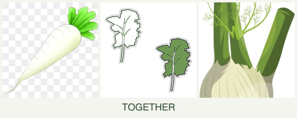 - Growth Requirements: Radishes and kale thrive in similar conditions, preferring cool weather and moist, well-drained soil. Fennel, on the other hand, prefers a slightly warmer climate.