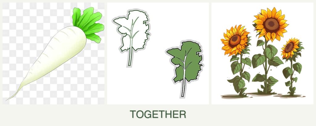 - Pest Repellent Properties: Sunflowers attract beneficial insects that prey on pests harming kale and radishes.