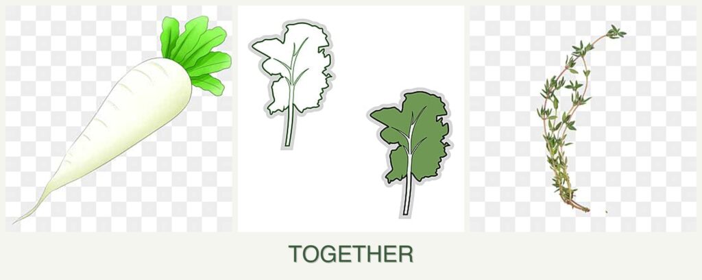 - Growth Requirements: Radishes and kale thrive in cooler conditions, while thyme prefers slightly warmer temperatures. However, they can coexist in moderate climates.