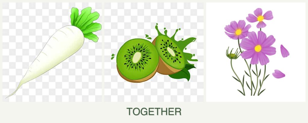 While radishes, kiwi, and cosmos aren’t ideal companions, planting them in proximity can offer some benefits: