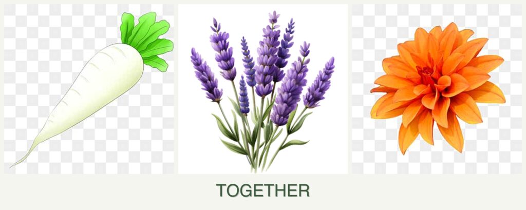 - Growth Requirements: Radishes require cooler temperatures, while dahlias need warmth. Lavender prefers dry, sunny conditions, which can conflict with the needs of radishes and dahlias.