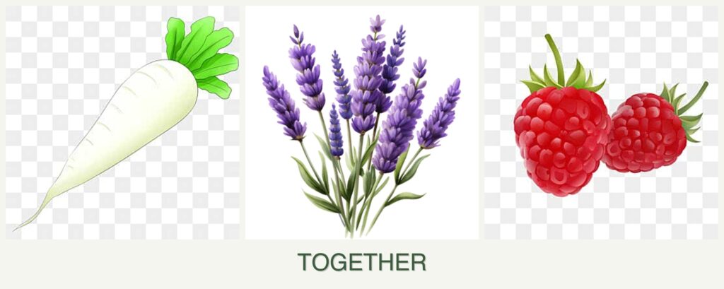 While radishes, lavender, and raspberries are not compatible as a trio, they each offer unique benefits when paired with other plants: