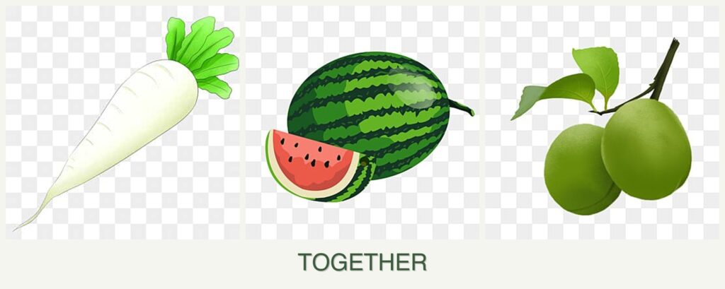 - It is not recommended to plant them together, but individually, radishes in spring/fall, melons after frost, and plums in late winter/early spring.