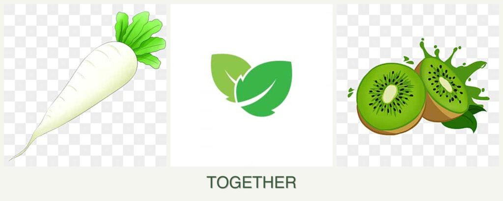 - Spacing: Kiwi’s extensive growth habit demands ample space, conflicting with radish and mint’s needs.