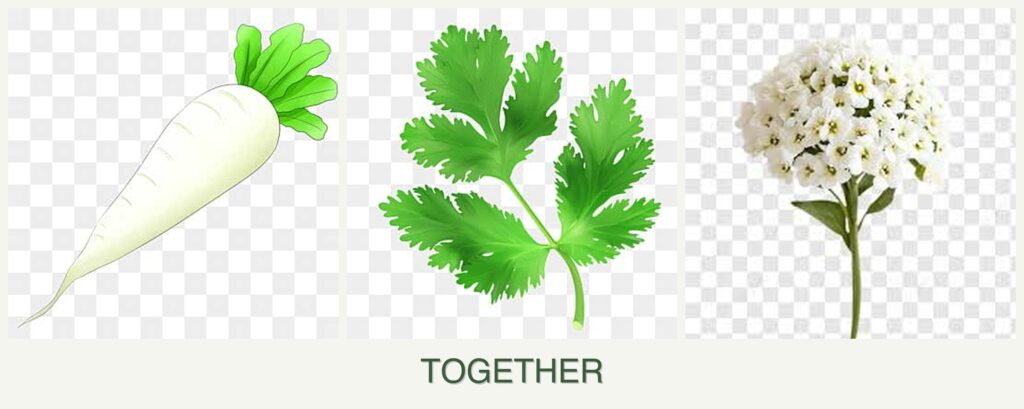 - Timing: Plant radishes early in spring or fall, parsley in spring, and alyssum after the last frost.