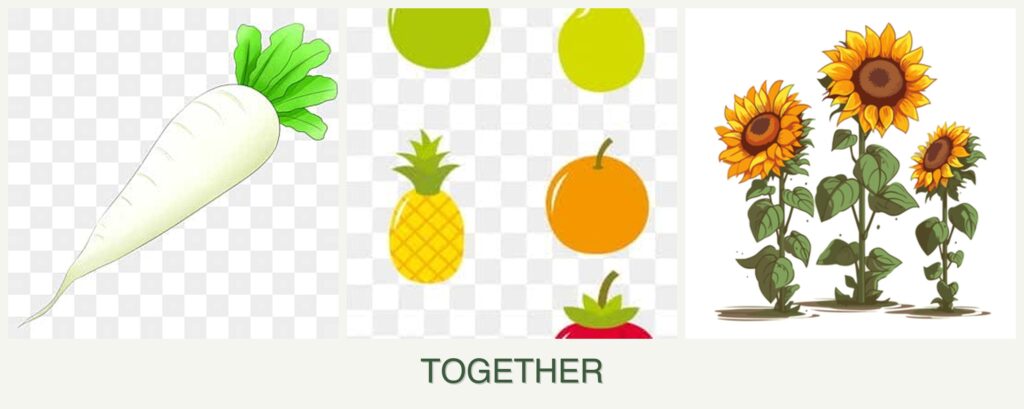 - Competition for Resources: Sunflowers and pear trees may compete for sunlight and soil nutrients, overshadowing smaller radish plants.