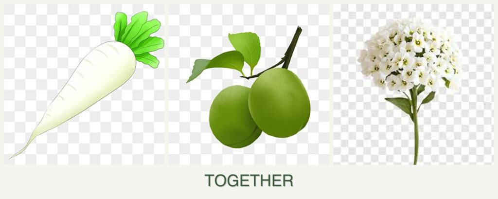Improved Growth: Radishes can be harvested early, allowing more space for plums to grow. Alyssum’s ground cover can improve soil moisture retention.