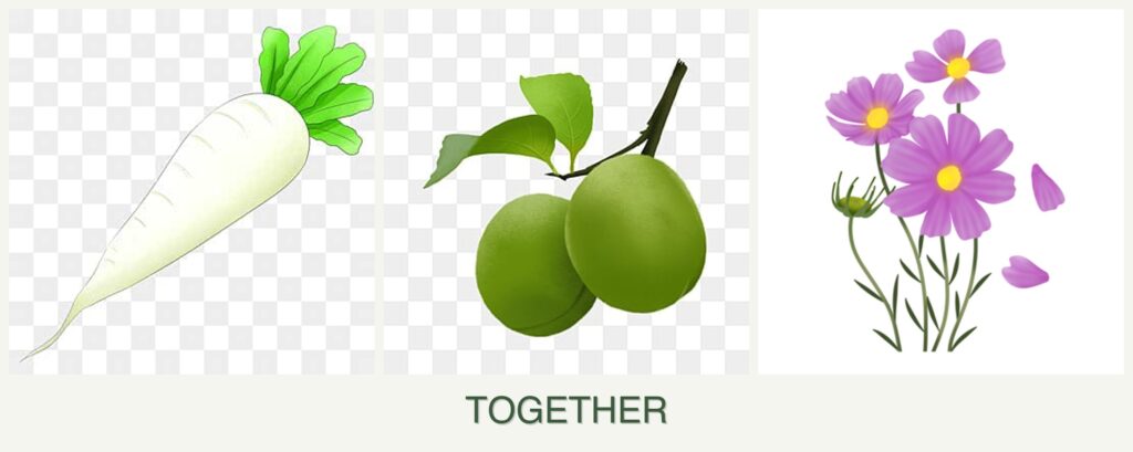 - Space Efficiency: Radishes grow quickly and can be harvested before cosmos and plums reach full maturity.