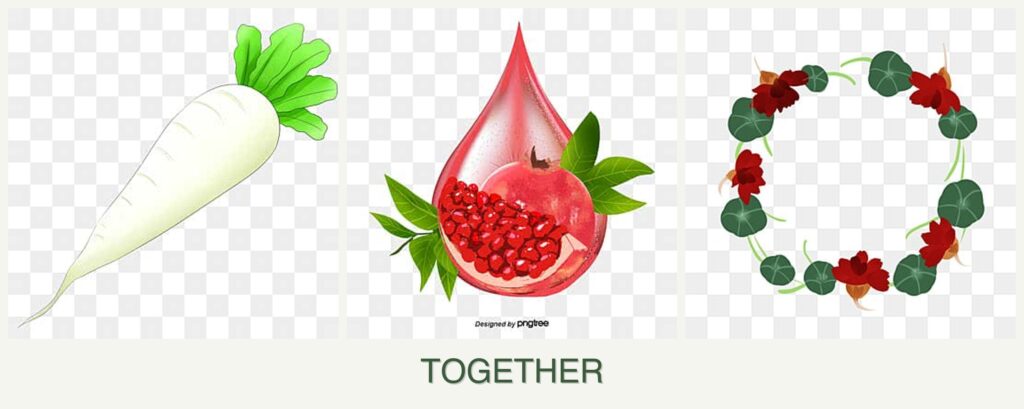 - Growth Requirements: Radishes grow quickly and can be harvested before pomegranates and nasturtiums mature. Nasturtiums can act as a ground cover, suppressing weeds and retaining soil moisture, which benefits both radishes and pomegranates.