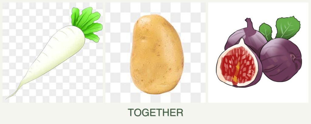 - Nutrient Needs: Potatoes and radishes compete for similar nutrients, while figs have deeper roots and different nutrient uptake.
