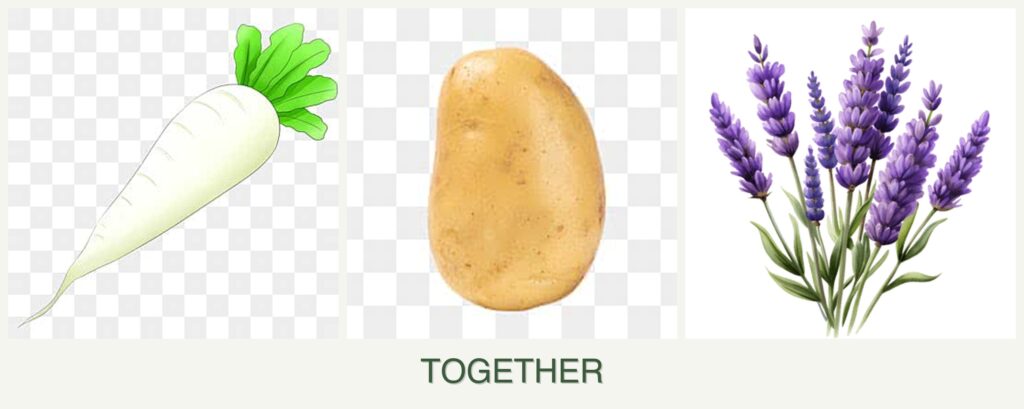 Can you plant radishes, potatoes and lavender together?