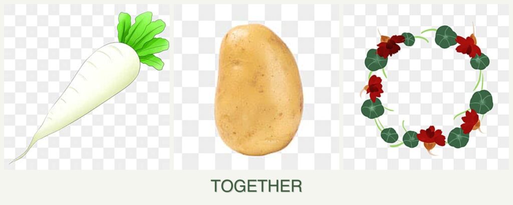 - When to Plant: Plant radishes early in the season, followed by potatoes and nasturtiums.