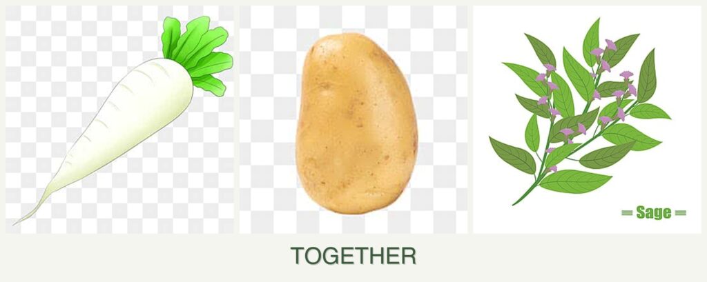 While radishes and sage can be planted together, offering several advantages, potatoes should be grown separately.