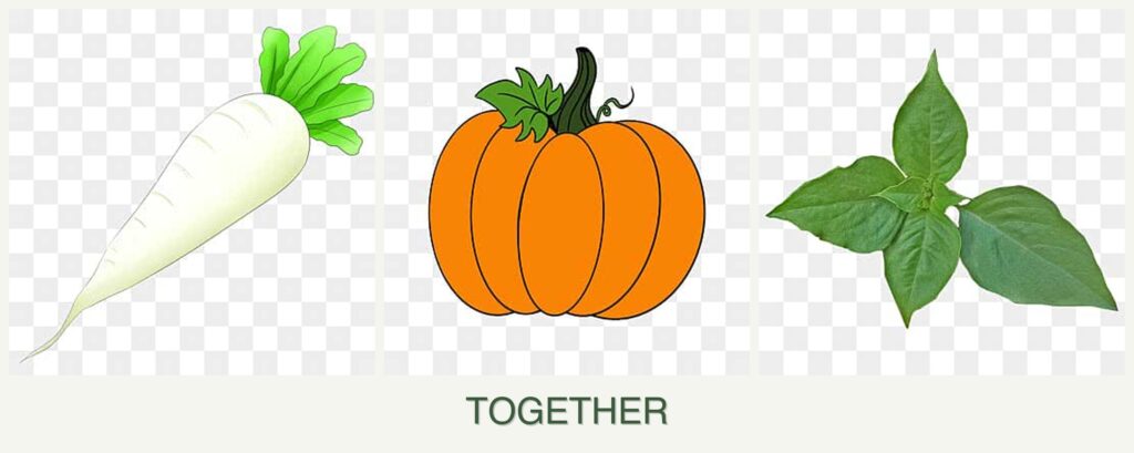Can you plant radishes, pumpkin, and basil together? Yes, you can plant them together, but with some considerations. These plants can coexist in a garden, benefiting from each other’s presence while requiring careful management to address their differing needs.