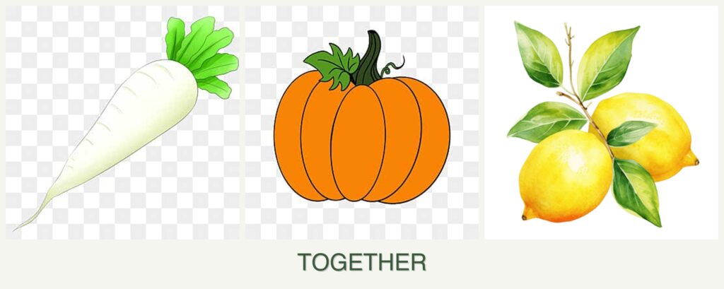 - Resource Competition: Pumpkins and lemons require significant nutrients and space, which can overshadow radishes.