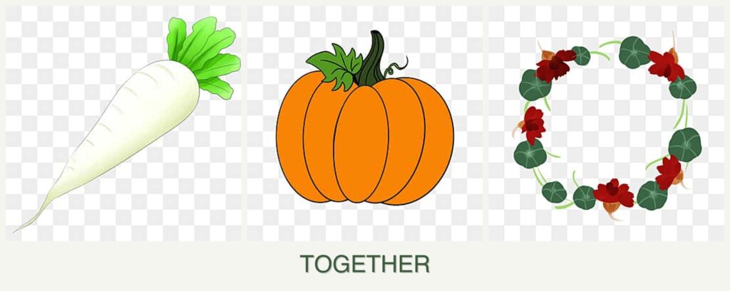 Planting radishes, pumpkins, and nasturtiums together offers several advantages: