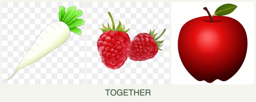 - Growth Requirements: Radishes are fast-growing root vegetables, while raspberries and apples are perennials with longer growth cycles and larger space needs.