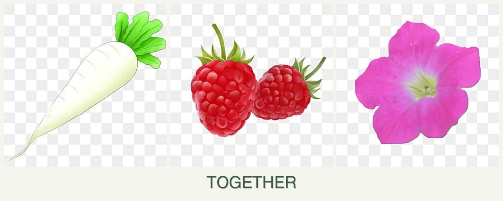 Can you plant radishes, raspberries and petunias together?