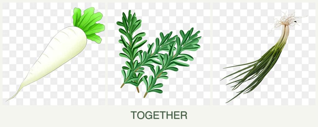 - Pest Control: Rosemary’s aromatic oils and chives’ sulfur compounds help repel pests that might otherwise trouble radishes.