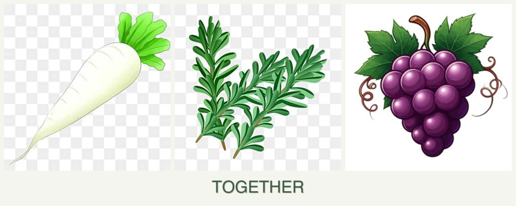 While planting radishes, rosemary, and grapes together is not ideal, each plant offers unique benefits when paired with other compatible plants: