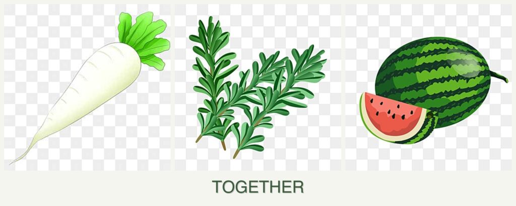 - Spacing: Melons need significant space to sprawl, which can overshadow radishes. Rosemary’s bushy growth can compete for space and sunlight.