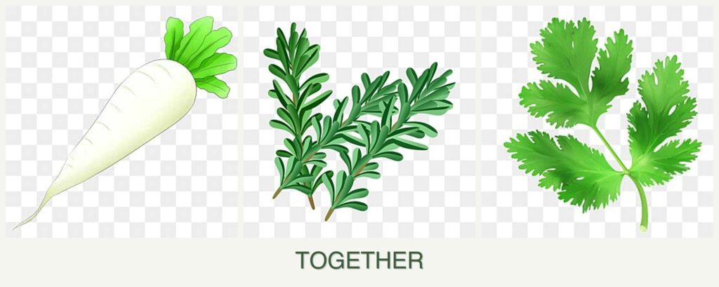 Pest Repellent Properties: Rosemary’s strong scent can repel pests like aphids and beetles, offering natural protection to radishes and parsley.