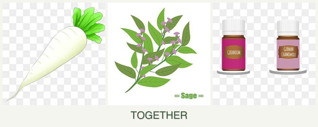 Pest Repellent Properties: Sage’s aromatic oils can deter pests, while geraniums can repel certain insects, providing a natural defense for radishes.